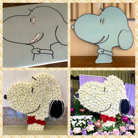 この度は故人様がお好きだったキャラクターを菊やカーネーションでお作りしてお見送りを致しました。ご家族様にとても喜んで頂き、弊社HPやSNS等への掲載をご了承頂きました。