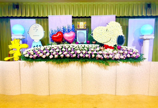 この度は故人様がお好きだったキャラクターを菊やカーネーションでお作りしてお見送りを致しました。ご家族様にとても喜んで頂き、弊社HPやSNS等への掲載をご了承頂きました。